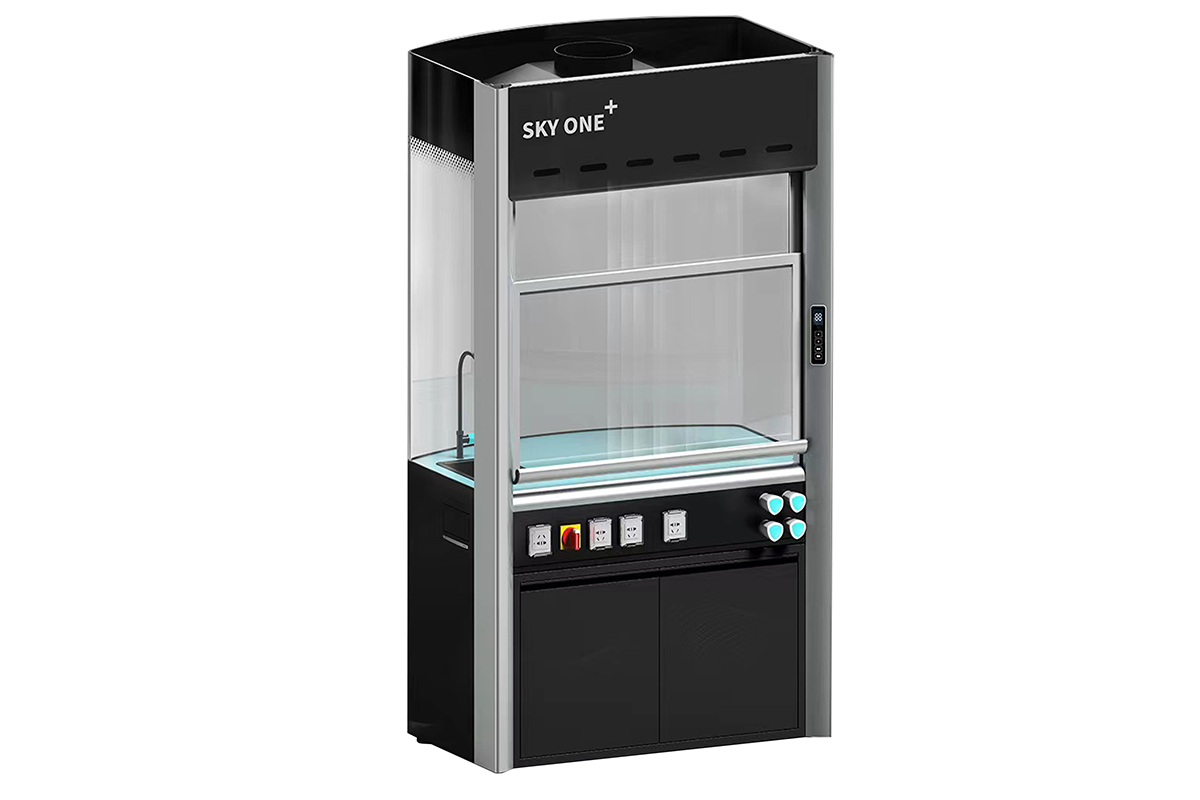 1. 結(jié)構(gòu)組合:采用三段組合式柜體,上部柜體三面為12mm整塊玻璃,視線無任何遮擋,實(shí)驗(yàn)時(shí)學(xué)生全方位觀看柜內(nèi)操作過程,中間(操作臺(tái)面),下部柜體(內(nèi)含單側(cè)獨(dú)立抽氣式組成柜及另側(cè)獨(dú)立水、電、氣體管線系統(tǒng)容納柜設(shè)計(jì);